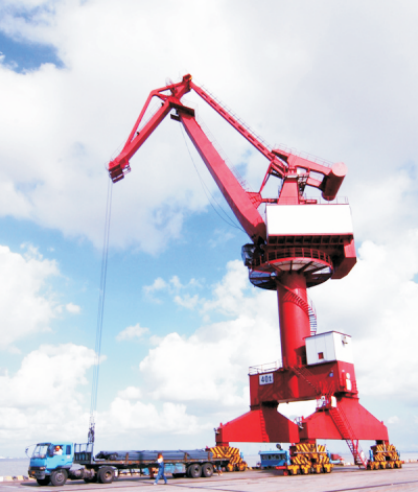 门座起重机是随着港口事业的发展而发展起来的,桥架通过两侧支腿支承在地面轨道或地基上的臂架型起重机。在发展过程中,门座起重机还逐步推广应用到作业条件与港口相近的船台和水电站工地等处。按用途可分为3类:①装卸用门座起重机:主要用于港口和露天堆料场,用抓斗或吊钩装卸。(2)造船用门座起重机:主要用于船台、浮船坞和舣装现场,进行船体拼接、设备舣装等吊装工作。3建筑安装用门座起重机:主要用在水电站进行大坝浇